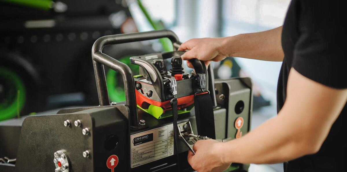 Maximální bezpečnost, ochrana zdraví a pohodlí operátora zajišťuje možnost ovldání všech našich strojů pomocí jozstickového dálkového ovládání s plnou funkcionalitou jako u kabinové verze.